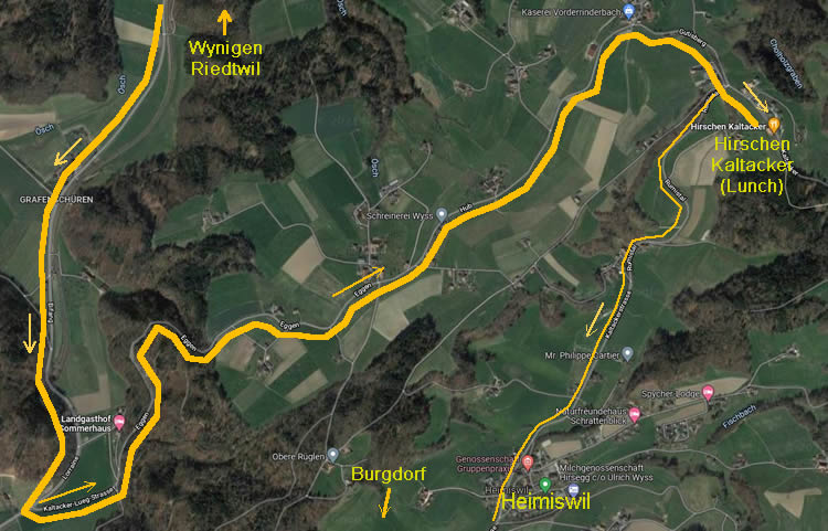 It must have been this: We headed south from Wynigen to the roads: